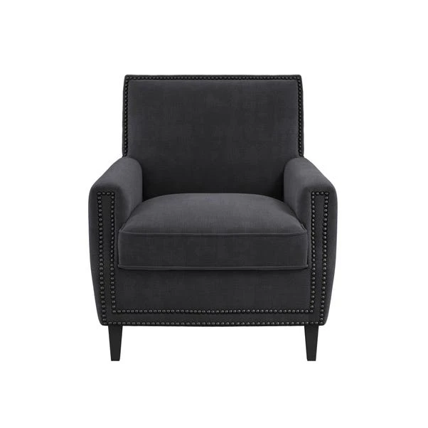 The Atticus Linen Blend Armchair features stud detailing around the frame, exuding luxury with its anthracite fabric. Its timeless design ensures comfort and style in any setting.