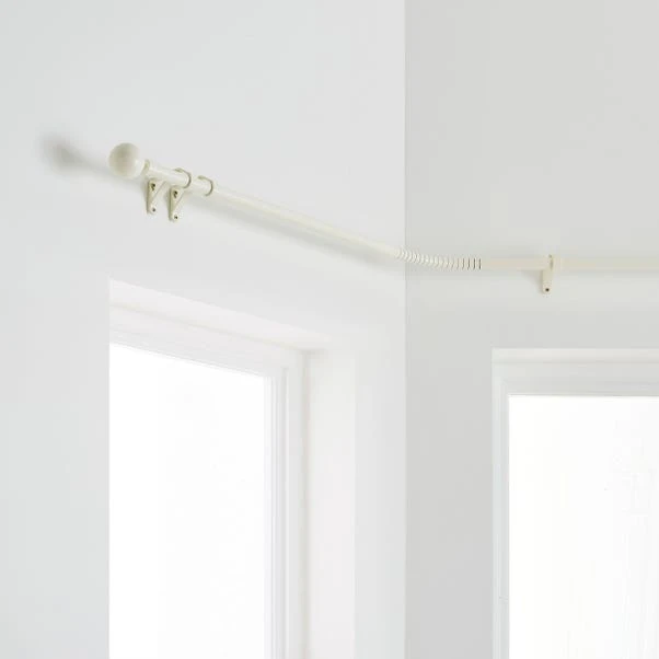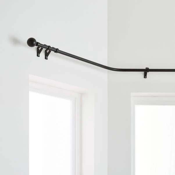 Arriving pre-cut and able to be bent by hand, the Bay Fixed Metal Eyelet Curtain Pole is perfect for accentuating your bay windows. It features a globe-shaped finial, can be cut to size, and is supplied with all fittings and fixtures.