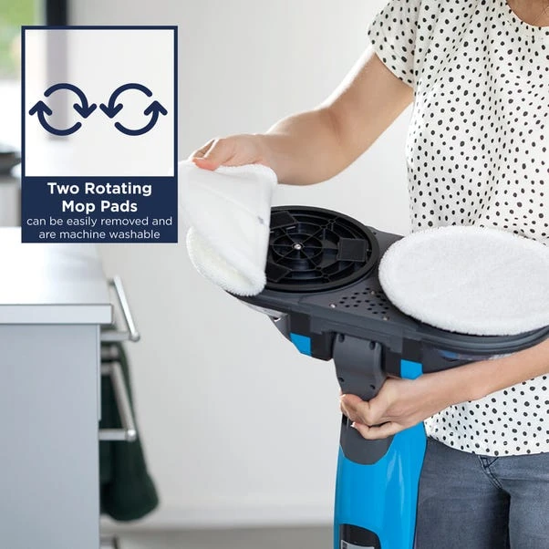 This electric mop features rapidly spinning pads that effectively remove ingrained dirt and grime, all while preserving the natural beauty and quality of your wooden, tile, or stone floors. The moisture control system lets you manage the amount of water released, allowing you to tailor your cleaning to the specific type of flooring and level of mess. Soft touch pads are perfect for gentle cleaning on hard floors, while the powerful scrubby pads tackle tough, sticky messes.
