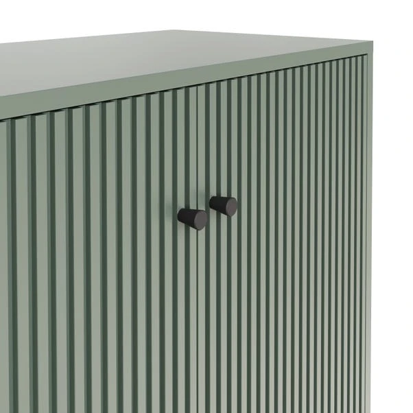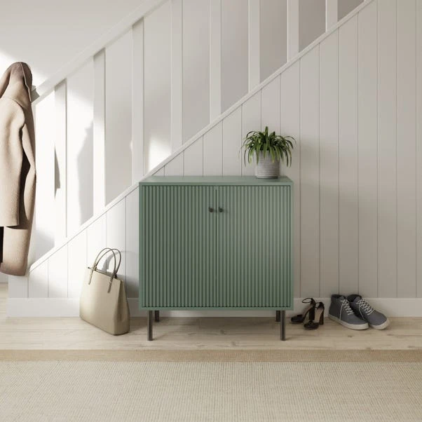 The Cody Shoe Cabinet combines style and versatility, offering a practical storage solution for any room in your home. Designed with three adjustable internal shelves that can be set flat or angled, this cabinet adapts effortlessly to suit your needs, whether used for organising shoes or as a general-purpose storage unit. Its sleek ribbed front design, paired with black metal accents, adds a contemporary touch, while the on-trend finish ensures it complements a variety of interiors.