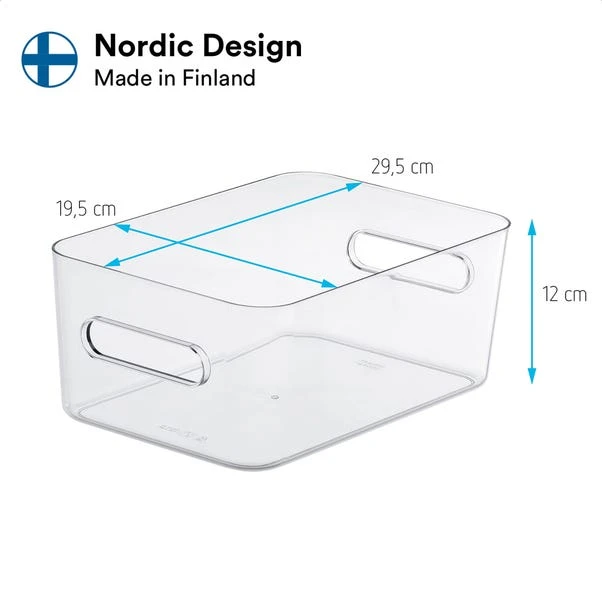 Store your belongings with ease using the Compact Storage Tub Medium with lids 5.3L Set of 4 in Clear. Featuring a 10-year guarantee, food approval, BPA-free construction, and 20% renewable content, these 5.3-liter transparent boxes provide ample storage space while promoting an organized living environment.