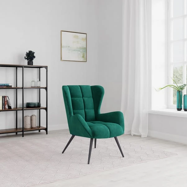 Sink into the plush comfort of the Dalton velvet chair that’s both super comfy and chic. The black metal frame and clean sleek lines creates a piece that’s sure to stand the test of time, while the plush velvet seat and back make it the perfect place to curl up in while reading or watching TV.