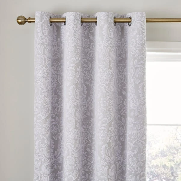 This pair of Dorma curtains feature a beautiful floral and bird design in a choice of colours. They are crafted from a polyester and cotton mix with a thick blackout lining, and feature a classic eyelet header. Available in a choice of sizes.
