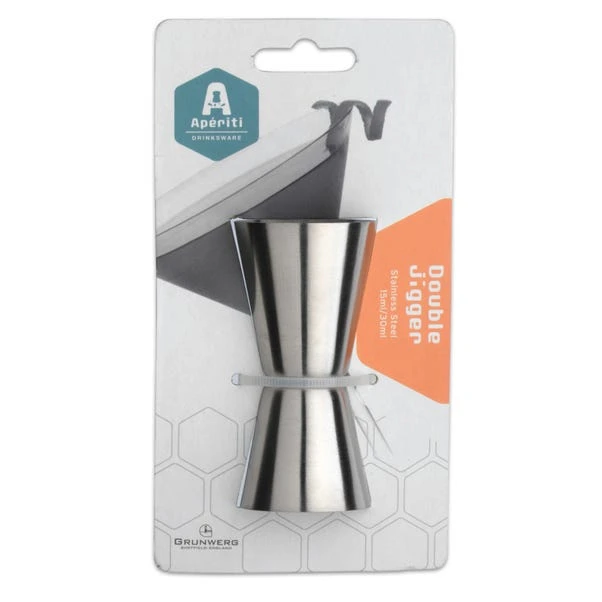 Made from good quality stainless steel, this dishwasher friendly Aperiti jigger features 2 cups and includes a guarantee of 12 months.