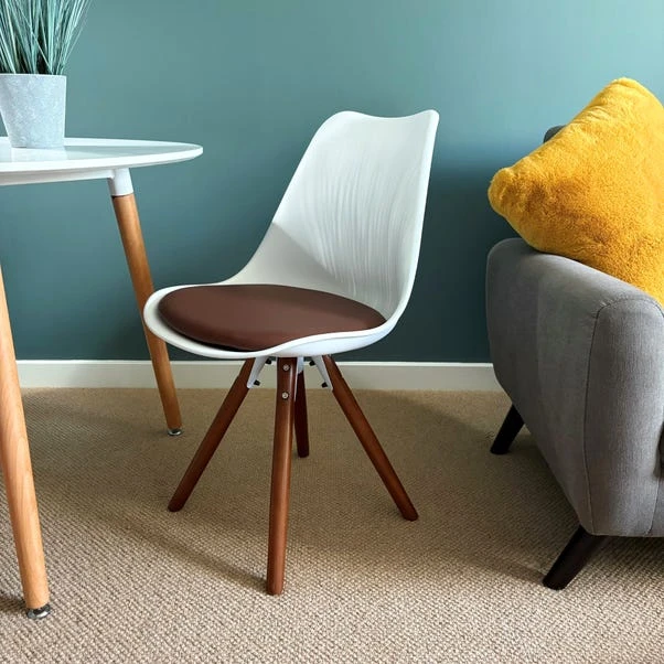Part of a collection of colourful, contemporary plastic dining chairs, this piece combines wooden legs, a curved back, and an easy-to-clean seat pad, making it both stylish and practical. The light wood legs provide a sturdy base, while the curved back offers ergonomic support, ensuring comfort during long, leisurely meals or extended periods of reading at a desk. The seat pad, which is both removable and easy to clean, adds an extra layer of comfort and convenience, making maintenance a breeze.