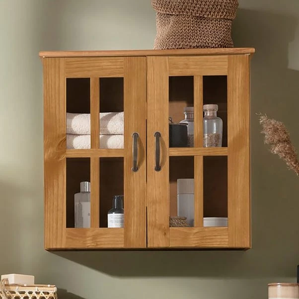 Designed with two glass front doors and shelves behind them, this wall-mounted cabinet offers an elegant solution for organising bathroom essentials. Crafted with durable materials, metal handles, and easy-to-clean surfaces, it effortlessly blends functionality with a contemporary look, providing a refined addition to your bathroom decor.