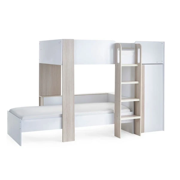 Designed to adapt to your child’s growing needs, the lower bunk easily transforms into alternate positions, providing flexibility as their needs change. With a built-in wardrobe and shelving, this bed offers ample space for storage and display, helping to keep toys, books, and treasures organised while encouraging creativity. Bedtime becomes a joyful adventure as your little one’s favourite belongings are always within reach, making every night a special experience.