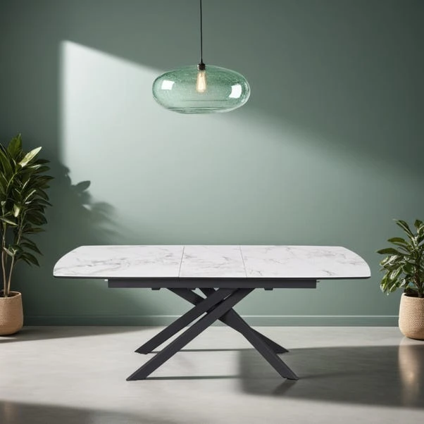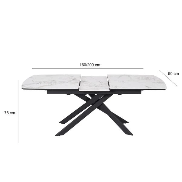 With its marble-effect ceramic top and iron legs, this table offers both elegance and stability. Seating up to 8 people, the table extends effortlessly from 160cm to 200cm, providing ample space for larger gatherings. Whether you’re hosting a special event or enjoying a family meal, this extending dining table is the perfect choice to create a welcoming and stylish dining environment.