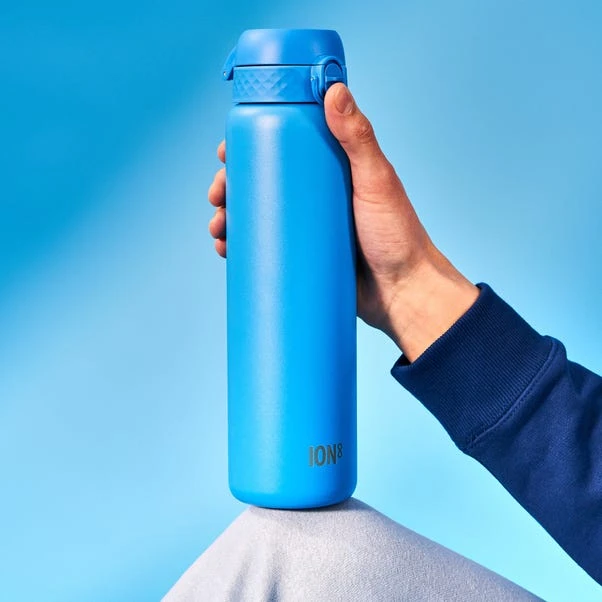 Stay hydrated with ease thanks to this large sized water bottle from Ion8. With its lockable, leak-proof OneTouch lid, minimal-tilt spout and convenient carry handle, this feature packed bottle is perfect for busy lives. Maintenance is easy using the dishwasher, and the vacuum insulated stainless steel construction keeps hot drinks hot and cold drinks icy cold for hours. A hygienic and durable choice, this bottle will keep you hydrated wherever adventure takes you.