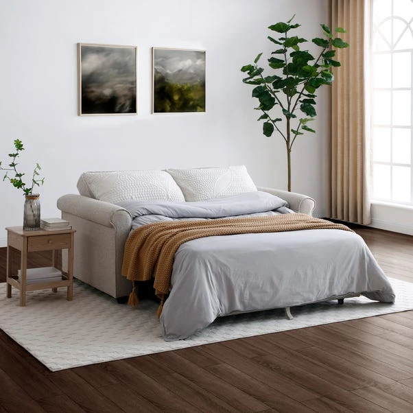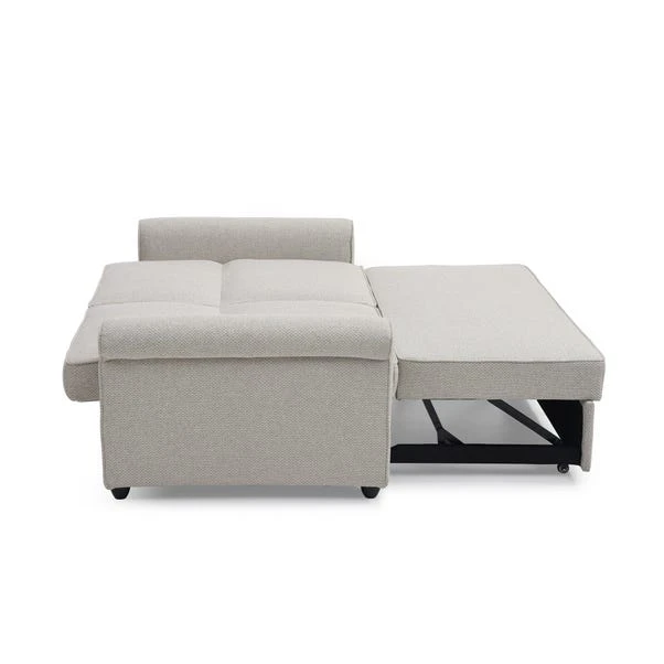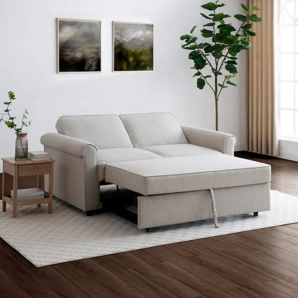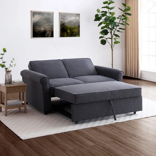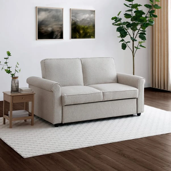 Featuring elegantly designed scroll arms, this sofabed offers a touch of classic sophistication while providing comfortable seating for two. Upholstered in soft, durable fabric, it invites relaxation and enhances the overall aesthetic of your space. When it’s time to accommodate overnight guests, this sofa bed easily transforms into a cosy bed, ensuring your visitors have a restful night’s sleep.