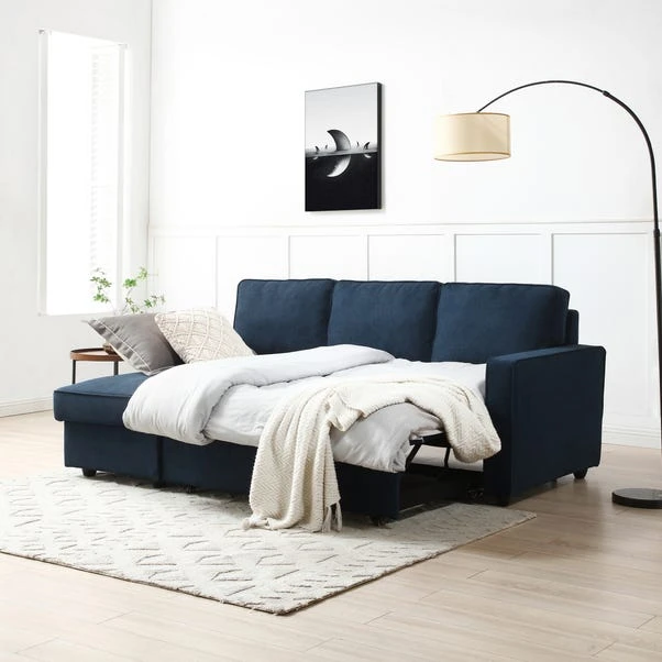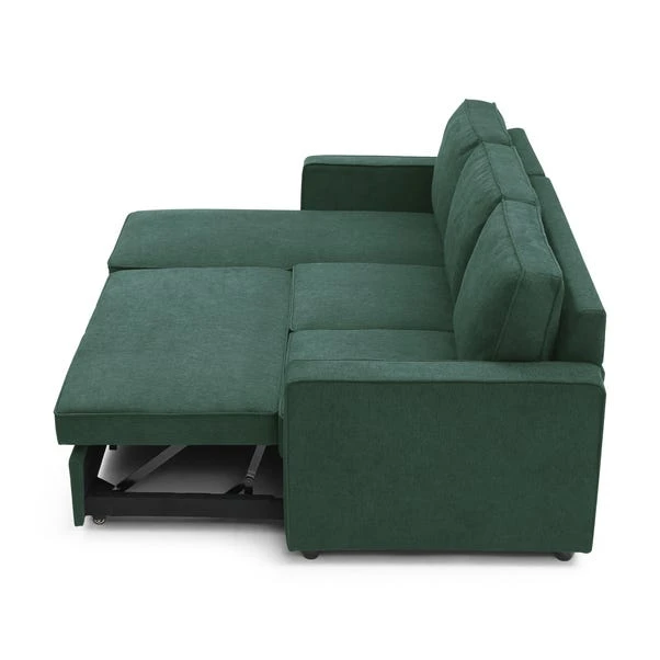 Crafted to elevate the aesthetics of your living space, this Sofa Bed provides unmatched comfort and ingenious storage solutions. Designed with practicality in mind, this sofa bed seamlessly combines comfort and convenience. The plush cushions, generously padded armrests, and spacious seating area ensure a luxurious lounging experience for you and your loved ones. What sets this sofa bed apart is its remarkable storage capabilities. Lift the chaise to reveal a hidden compartment that offers ample space for storing extra pillows, blankets, or any essentials you want to keep within reach but out of sight. This innovative feature allows you to maximize your living space without compromising on style.