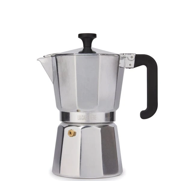 Let’s not beat around the coffee bush. If you love strong, hot cups of the black stuff, you need this classic stovetop espresso maker. It’s based on the proven traditional design, with a fast-heating aluminium body that all but guarantees great-tasting espresso. Keep this mainstay in your coffee-making collection and you could be enjoying zingy, syrupy pick-me-ups every single morning. The espresso pot comes with a silicone gasket for long-lasting performance and has a stay-cool handle for easy pouring. It makes around six double shots of espresso.