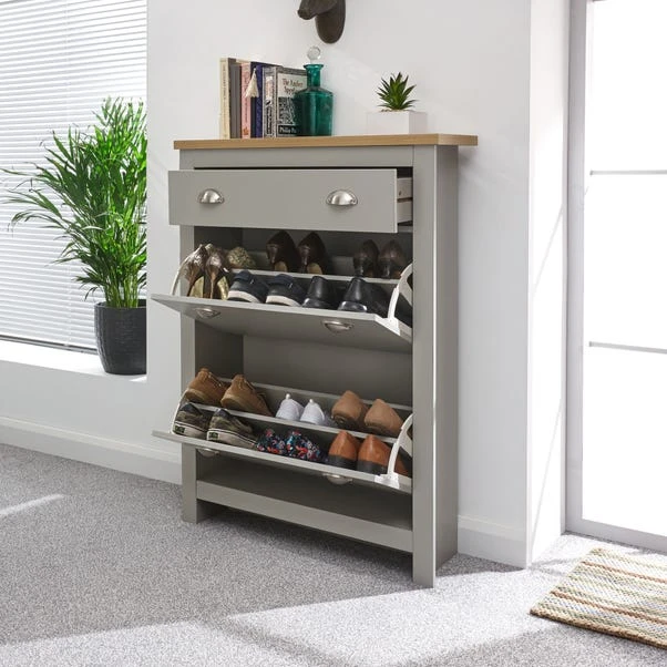 Struggling to keep your shoes tidy? The Lancaster Shoe Cabinet is the perfect solution, designed to hold up to 3 pairs of shoes (up to size 10) on the bottom shelf and 3 pairs (up to size 6) on the top shelf. With two spacious compartments, you can neatly arrange your shoes side by side for easy access. To ensure a perfect fit, place larger shoes on the bottom shelf and smaller, more flexible shoes on the top shelf. For smooth operation, position shoes flush with the back of the drawer.