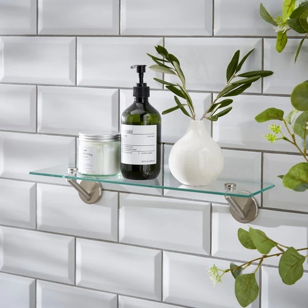 Enhance your bathroom organisation with this elegant Glass Bathroom Shelf. Crafted with sturdy metal construction, this shelf offers reliability and durability for your toiletries and decor items. Its sleek and contemporary design adds a touch of modern elegance to any bathroom decor. Complete with wall fixings, installation is hassle-free and straightforward, allowing you to enjoy your new shelf in no time.