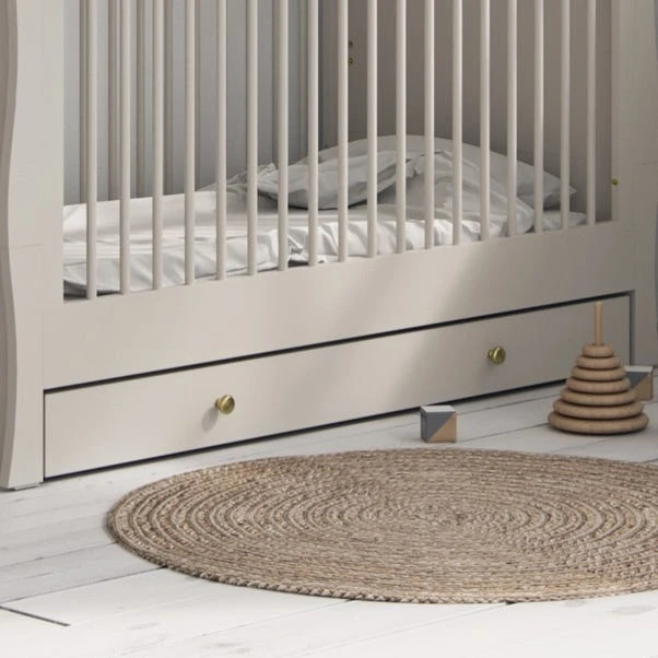 The Little Acorns Celeste Underbed Drawer offers an ideal storage solution when space is limited. Running on fixed caster wheels for smooth operation, this stylish drawer is perfect for clothes, toys, or changing accessories. Designed to sit beautifully under the cot or toddler bed, it seamlessly blends with any nursery decor.
