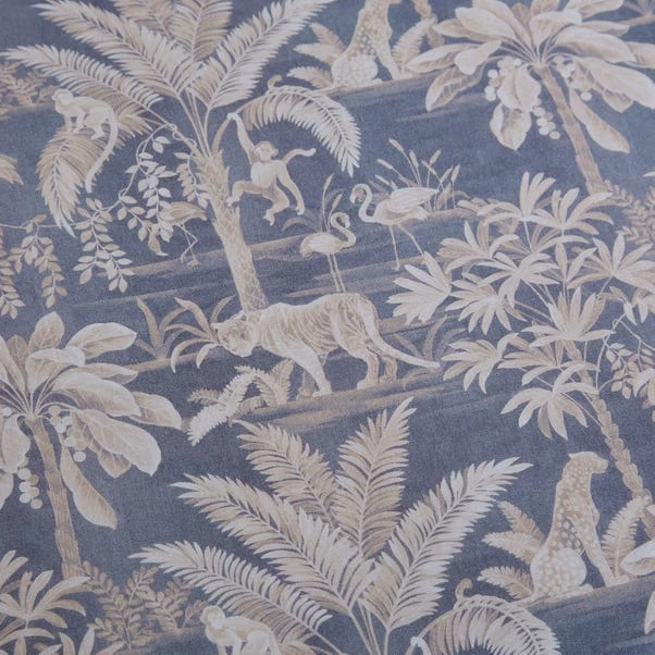 Adorned with swinging monkeys and prancing tigers, this jungle-inspired design creates an enchanting and exotic ambiance in your room. Crafted from easy-care polycotton, this set ensures both style and practicality, simplifying your bedding maintenance. With a convenient button closure, this set not only captivates with its visual appeal but also offers ease of use. Available in single, double, king, and super king sizes, it guarantees a perfect fit for any bed dimension, transforming your space into a captivating sanctuary inspired by the allure of a jungle paradise.
