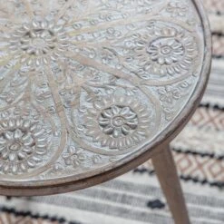 Crafted from solid walnut wood, the Mabie Walnut Round Side Table showcases an elegant design with soft edges, drawing inspiration from the timeless mid-century and scandi styles.