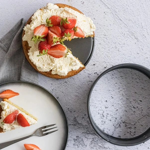 The MasterClass non-stick Spring Form Loose Base Cake Pan Round 15cm features a quick-release springform design for easy cake removal. With its durable construction, this cake pan guarantees long-lasting performance. The Quantum II Non-Stick coating ensures effortless food release, while the dishwasher-safe design allows for convenient cleaning. With a 20 year guarantee, including a 5 year non-stick guarantee, this cake pan offers reliability and convenience for your baking needs.