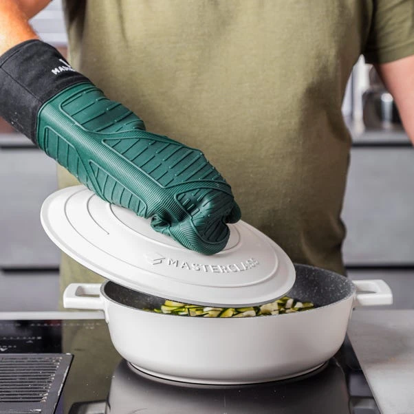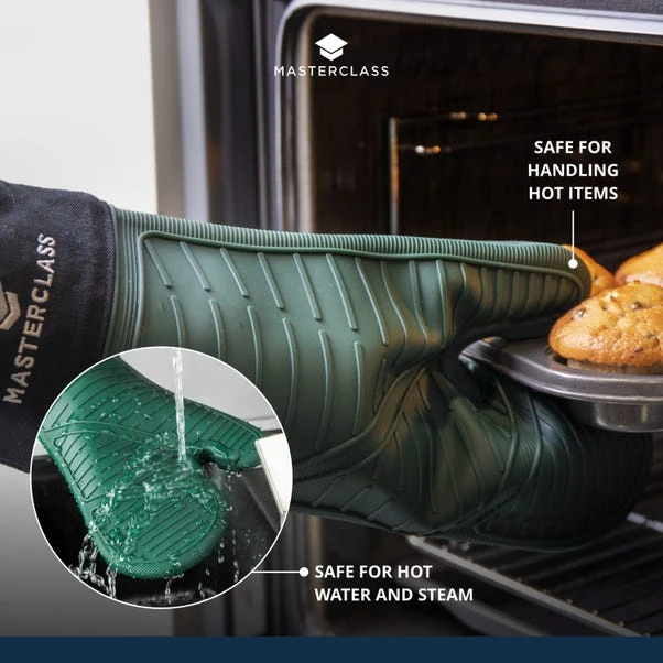 Ensure safe and comfortable handling with the MasterClass Silicone Single Oven Glove. Made with a combination of silicone and cotton, this oven glove offers waterproof and heat-resistant properties for ultimate protection. Its comfortable design, stain and odor resistance, and machine-washable convenience make it a practical choice. With a five-year guarantee, this silicone oven glove is a reliable companion in the kitchen.