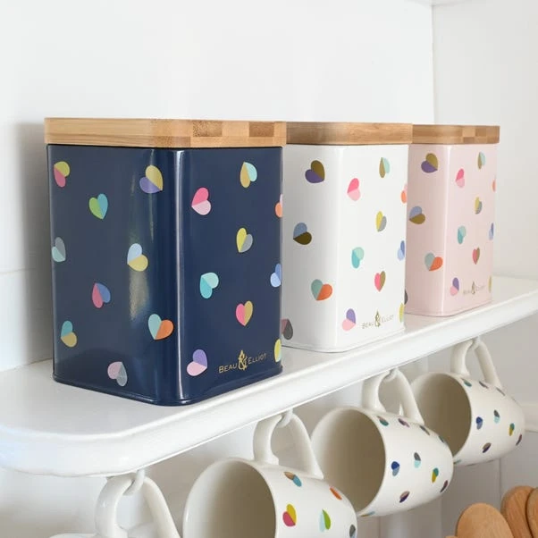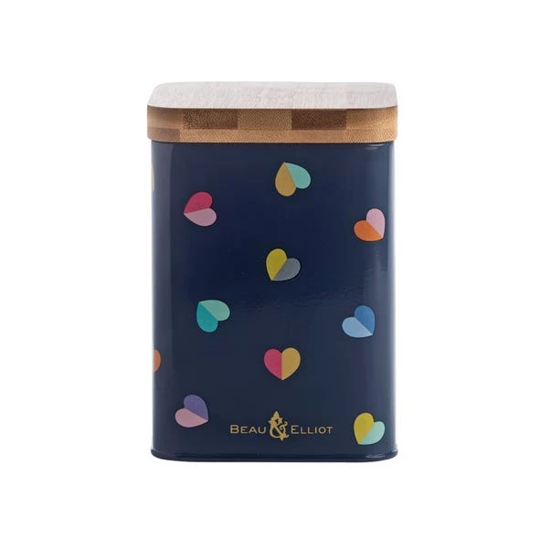 Experience fashionable elegance with our Beau & Elliot Confetti Storage Tin. This tin, adorned with a hearts design and sealed with a bamboo lid, is perfect for storing tea, coffee, sugar, herbs, or spices. Its stylish heart print and choice of colours that compliment the Confetti range, making it an excellent addition to any kitchen. Made from tin and bamboo, it’s both durable and easy to clean. Mix and match for a touch of glamour.