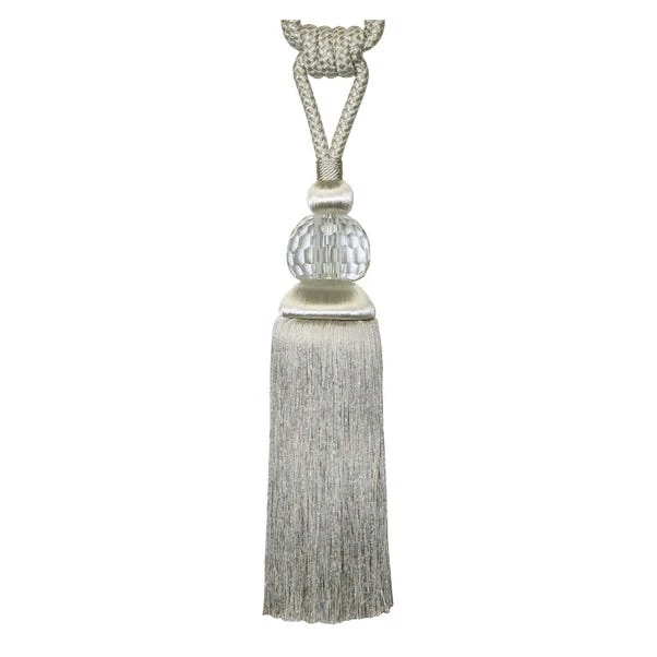Bring sophistication to your curtains with this luxurious platinum tieback, featuring a beautifully crafted glass embellishment that brings a touch of glamour to your drapes.