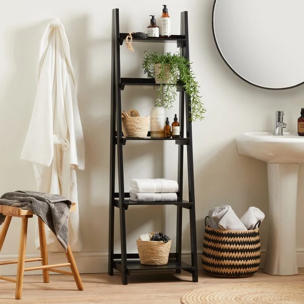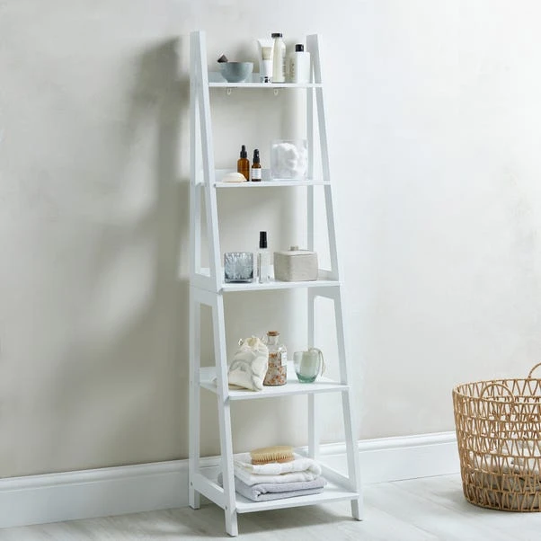 This five-shelf ladder is perfect for adding a stylish storage solution to your bathroom. This ladder is ideal for holding towels, bathroom products, plants, ornaments and more so you can personalize them how you would like. This ladder is made from durable MDF that is finished in water-resistant paint making it perfect for the bathroom.