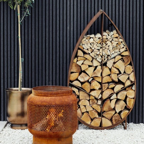 Prevent tripping up over cluttered piles of firewood and hurdling over scattered logs with this visually appealing sculptural log storage, bringing practicality and style to your outdoor space. The statement leaf shape is not only aesthetically pleasing but also allows for ample storage space, making it perfect for storing your firewood and keeping it organised with the divided shelf design, while the frost-resistant design ensures that it can withstand even the harshest of winter conditions.