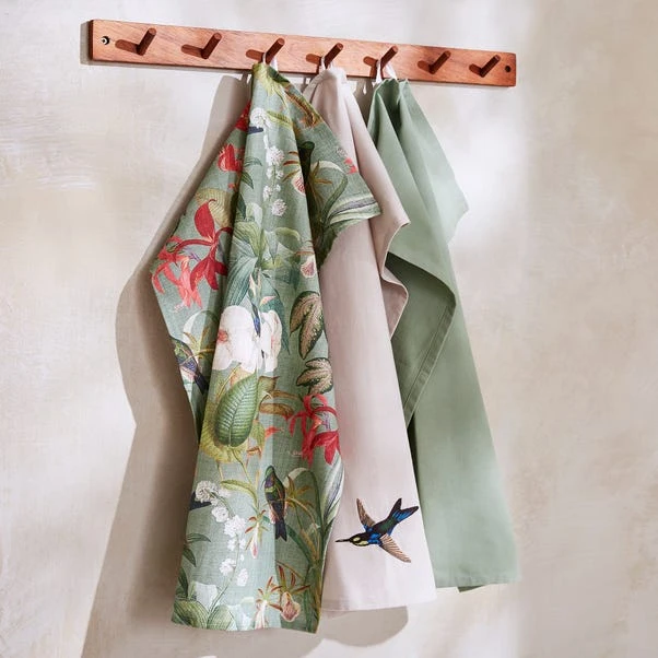 Keep your kitchen chic and practical with our Set of 3 Botanical Bird Tea Towels, featuring a printed botanical birds design and coordinating patterned towels on 100% cotton. Soft, stylish, and durable, they make kitchen chores a breeze.