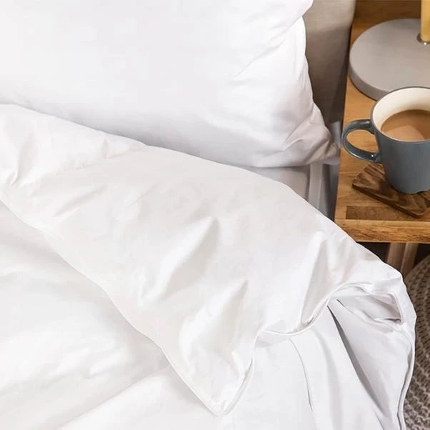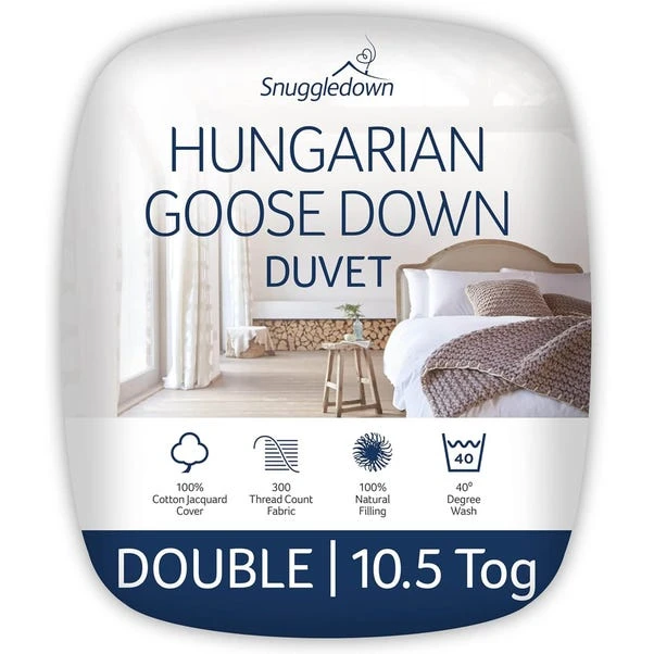 The Snuggledown 10.5 tog duvet from the Retreat range offers the perfect balance of warmth and comfort with its blend of 80% Hungarian goose down and 20% small goose feathers. Encased in a luxurious 300 thread count cotton jacquard cover, this duvet ensures a soft, breathable sleep environment. The internal box construction keeps the filling evenly spread, eliminating cold spots for consistent warmth. Easy to care for, it is machine washable and dryer-friendly for your convenience.