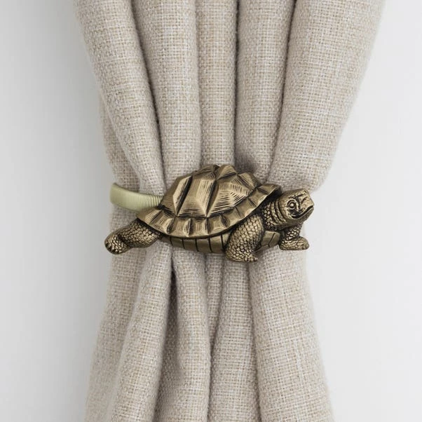 A chic and practical accessory designed to add a touch of sophistication to your window dressing. The intricate tortoise design, coupled with an antique brass finish, seamlessly blends style and functionality. The magnetic closure ensures easy and secure fastening, allowing you to effortlessly enhance the look of your curtains. Complete the coordinated look by exploring our range of other Tortoise items.