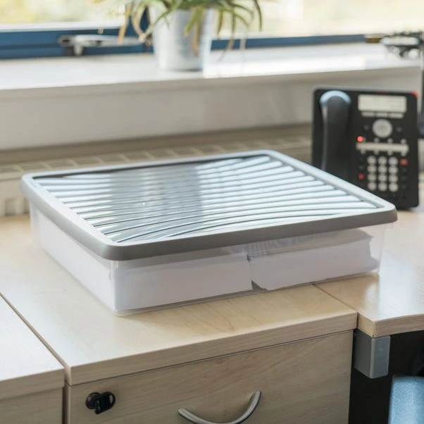 Organise with style using the Wham Box Set of 3 Stackable Boxes & Lids. Crafted from high-quality materials, these storage boxes with click-on lids are strong and durable. The close-fitting lids enhance security, and the design maximises internal storage space, allowing for efficient nesting when not in use.