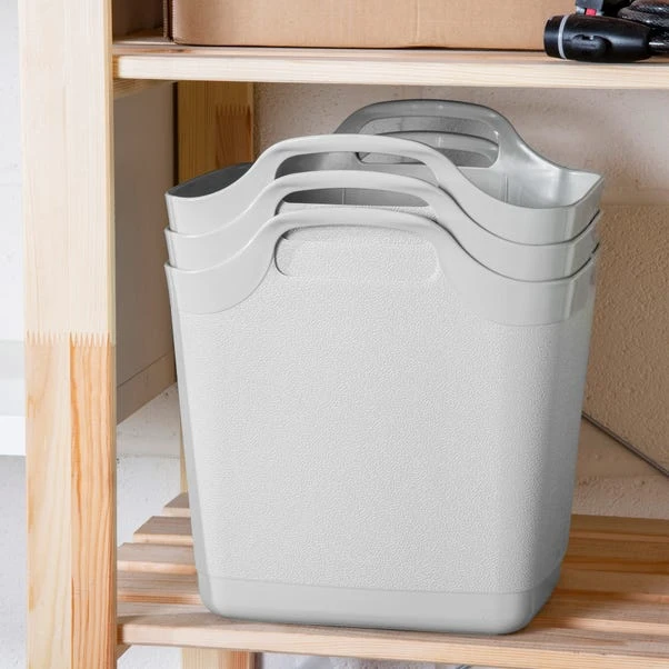 Whether you need a tub for storage purposes at home or for completing tasks around the garden, this Set of 3 Grey Tubs from Wham’s Flexi-Store range are up to the job. Not only are these tubs incredibly practical, but they are also space-saving as they can be easily nested together when not in use. Both durable and lightweight, they are easy to move around with integral handles designed for your convenience and each tub offers an impressive 15 litres capacity, providing ample storage space for all your essentials, whether that’s containing your cleaning bottles, tools or garden equipment.