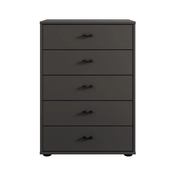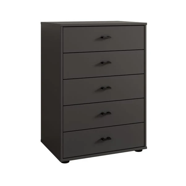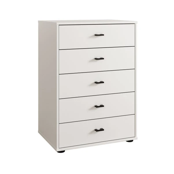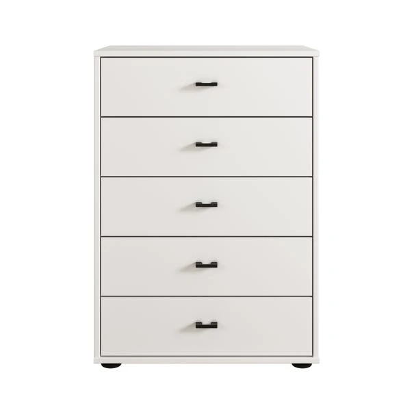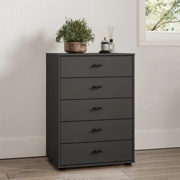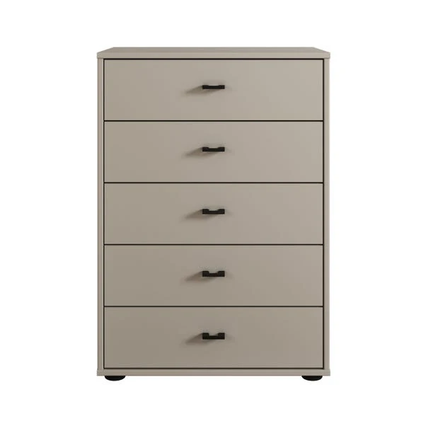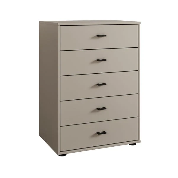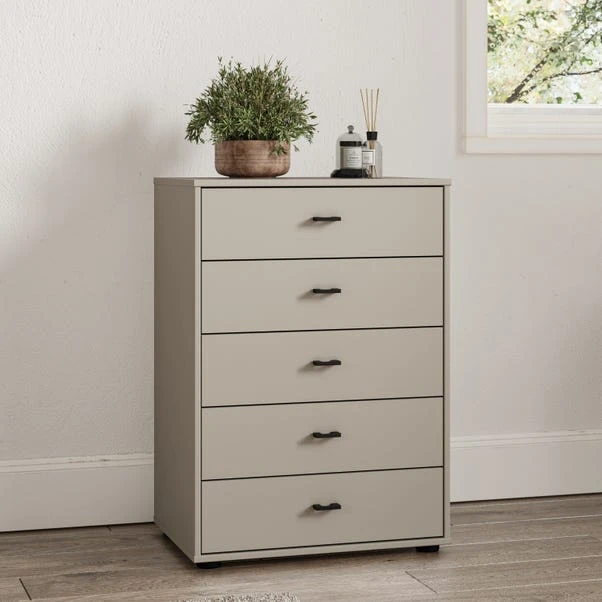 Experience elegance and practicality with the Kahla Matt 3 5 Drawer Chest. Available in a choice of trendy colours, this chest of drawers boasts modern slate coloured handles, adding a touch of sophistication. Perfect for smaller bedroom spaces, this chest of drawers is designed with longevity in mind, crafted with highly resilient metal fittings and scratch resistant fronts. Delivered fully assembled, the Kahla Chest of Drawers will seamlessly integrate into your bedroom and provide plenty of useful storage space.