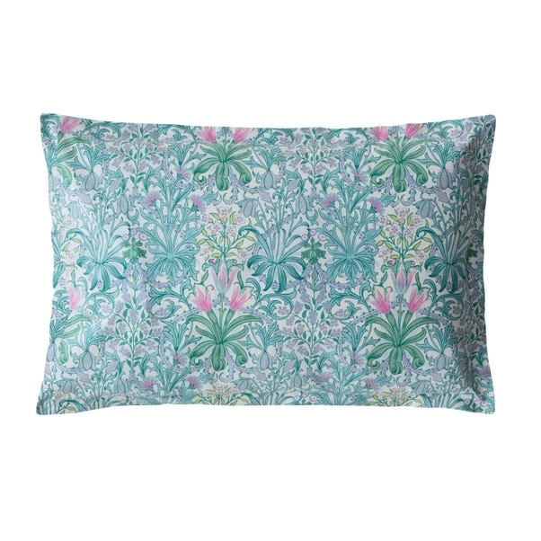 Experience the beauty of nature with the William Morris Woodland Weeds Oxford Pillowcase in Teal. This elegant Arts and Crafts design features an abundance of daisies, tulips, and cornflowers with flowing scrolling stems in a symmetrical formation. The 200 thread count cotton percale fabric is soft and crisp, coloured in shades of fuchsia, lavender, and soft teal. This pillowcase champions Morris’ love of nature and coordinates perfectly with the corresponding bedding.
